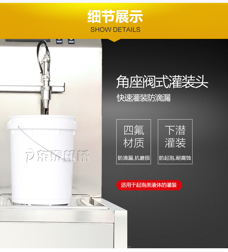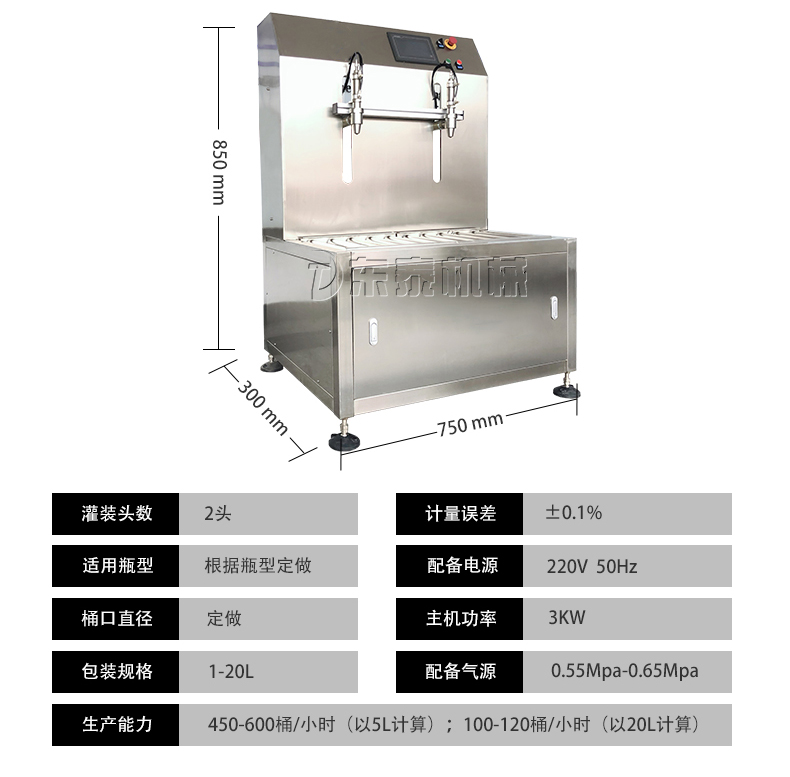半自動油脂灌裝機可以灌裝1-20L不等的各類食用油、潤滑油等,并且半自動油脂灌裝機體形較小,移動方便,多適用于中小型 的油脂生產(chǎn)廠家,幫助廠家實現(xiàn)更快、更的油脂灌裝。半自動油脂灌裝機的兩個頭由兩個泵分別控制,灌裝量更加并且速度也大大提高。單頻變頻器調(diào)速,克服分布不均的現(xiàn)象。有極高的穩(wěn)定性,當(dāng)某一站管道堵塞時,不會影響其他站,造成灌裝精度的變化。