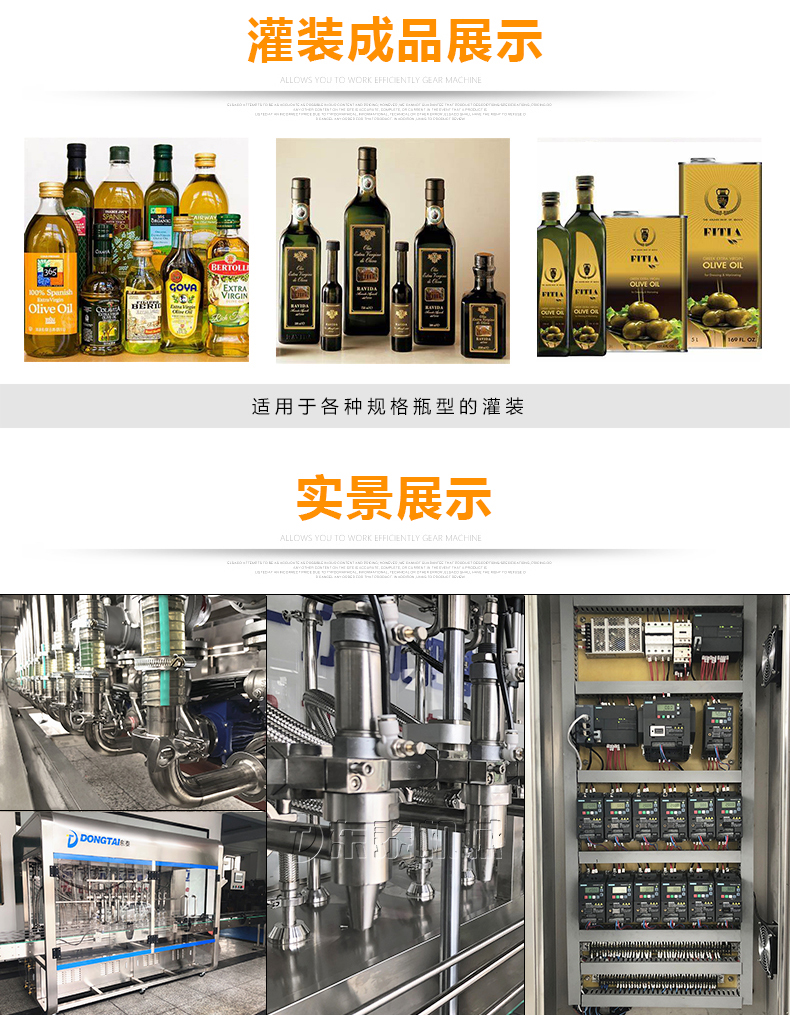 該食用油灌裝機采用流量計式計量灌裝原理,多項認證,適用于各種規格(1-5升)的南瓜籽油、榛子油、牡丹籽油、芝麻油、核桃油、山茶油、亞麻籽油、棉籽油、橄欖油、大豆油、玉米油、菜籽油等食用油灌裝。設備采用高精的旋轉編碼器計量,保證了1%o的灌裝精度,在保證灌裝精度的同時,提高了20%-35%的灌裝速度,操作簡單,維護方便,節省人工成本,生產效率更高。